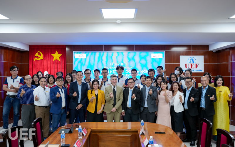 On UEF’s behalf were Dr. Nhan Cam Tri, Vice President, Board of Presidents; Dr. Pham Huy Cuong, Dean of the Faculty of English; Mr. Huynh Quoc Phong, Director of the Center of Corporate Partnerships; Assoc. Prof. Dr. Duong My Tham; Mr. Nguyen Dinh Tuan, Deputy Dean of the Faculty of English; Mr. Nguyen Viet Thuy, Deputy Dean of the Faculty of Tourism and Hospitality Management; Ms. Nguyen Thi Kim Loan, Deputy Dean of the Center of Corporate Partnerships and the Deputies of UEF faculties, departments and centers.