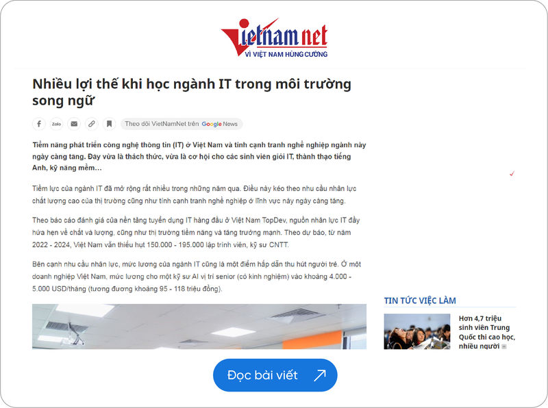 Ngoại ngữ là công cụ thuận lợi học thực tế tại doanh nghiệp