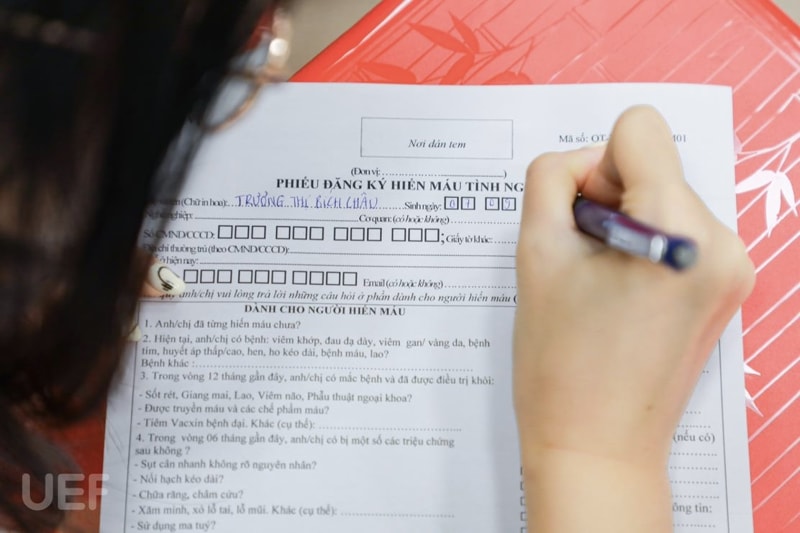 “Đây là lần thứ ba mình tham gia hiến máu tại UEF. Mình thấy đây là hoạt động vô cùng ý nghĩa và rất vui khi được góp sức nhỏ của bản thân vào các hoạt động cộng đồng”, bạn Đỗ Thị Hoài Thanh – Sinh viên ngành Quản trị nhân lực chia sẻ.