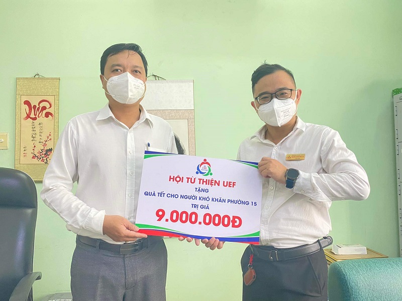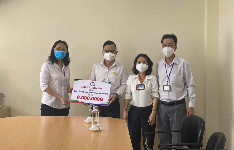 Đại diện Hội từ thiện UEF tặng quà Tết cho bà con khó khăn của 2 phường 15 và 17