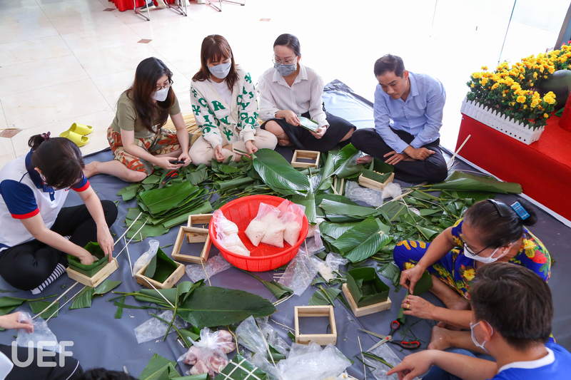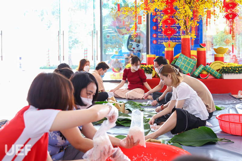 Theo đó, sáng nay - 18/1, UEF đã tổ chức tặng quà Tết cho CB-GV-NV và chương trình gói bánh chưng “Tết trao yêu thương, nhận vạn điều may”. Hoạt động đã nhận được sự tham gia, ủng hộ của đông đảo thành viên Nhà UEF.