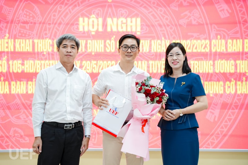 Về phía UEF có TS. Nguyễn Thanh Giang - Hiệu trưởng, Bí thư Đảng ủy; TS. Mạch Trần Huy - Phó Bí thư Đảng ủy cùng các giảng viên, sinh viên là Đảng viên, Đoàn viên.
