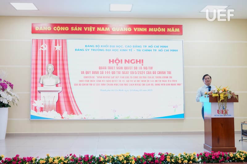 Sáng nay (4/1), Đảng bộ Trường Đại học Kinh tế - Tài chính TP.HCM (UEF) vừa tổ chức thành công Hội nghị quán triệt Nghị quyết số 18 - NQ/TW và Quy định số 144-QĐ/TW ngày 9/5/2024 của Bộ Chính trị.
