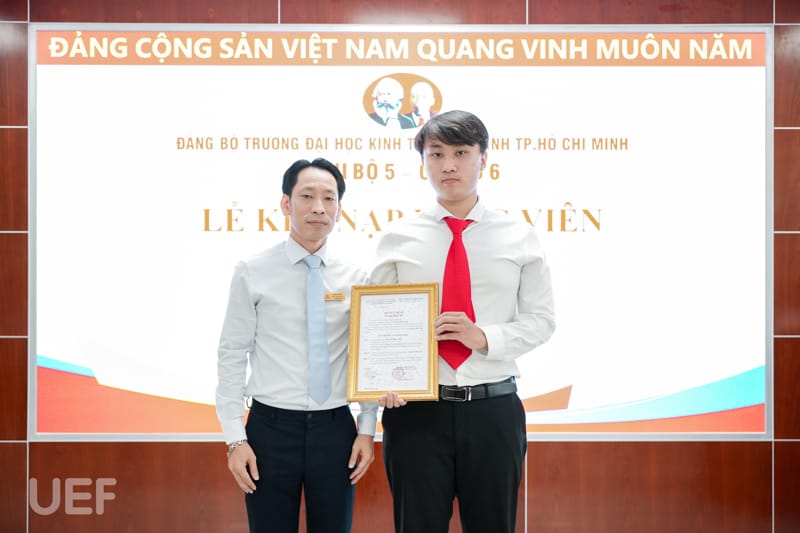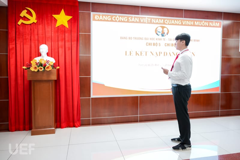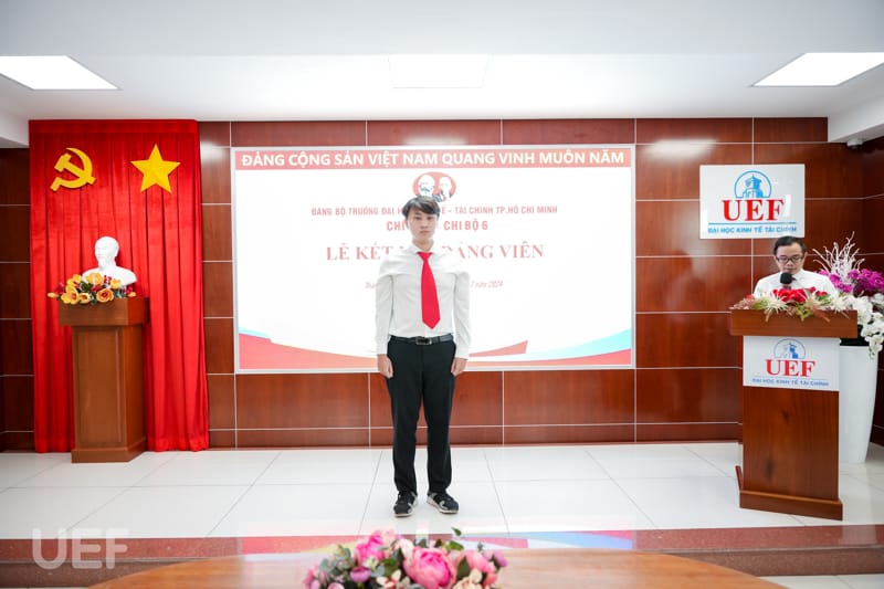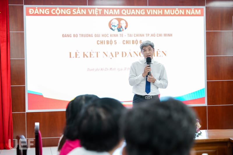 Tại buổi lễ kết nạp cho hai quần chúng sinh viên ưu tú, đại diện Đảng ủy UEF, Đ/c Nguyễn Thanh Giang đã gửi lời chúc mừng, đồng thời tiếp thêm động lực để các Đảng viên mới vững tâm và vượt qua những thử thách để trở thành người Đảng viên gương mẫu.