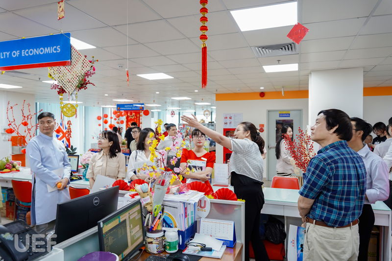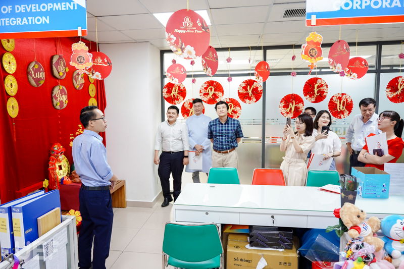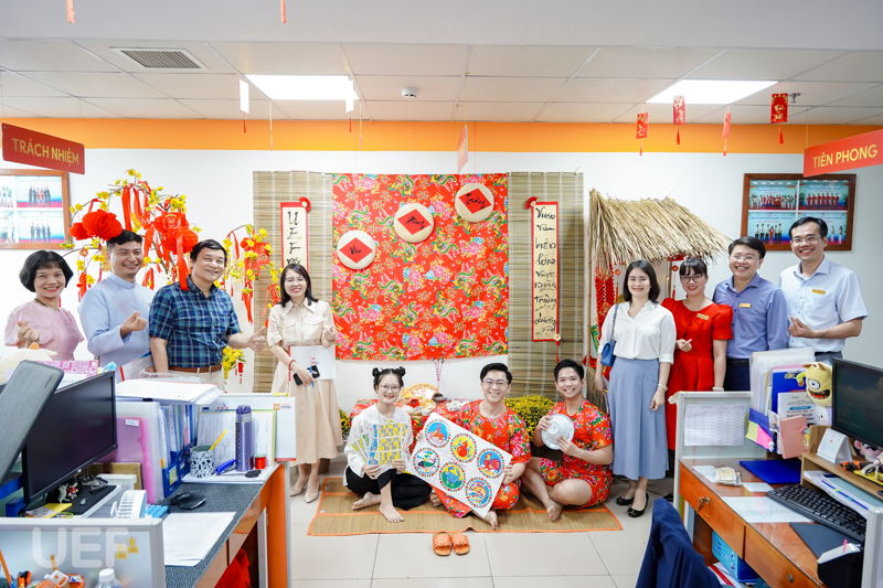 Không khí Tết Nguyên Đán Giáp Thìn 2024 đã ngập tràn khắp mọi góc Nhà UEF. Bên cạnh những hoạt động đón Tết sôi nổi dành cho sinh viên, Công đoàn trường UEF còn phát động cuộc thi trang trí văn phòng cho đội ngũ cán bộ - giảng viên - nhân viên. Sân chơi được khởi động từ 26/12/2023 và chính thức tổ chức chấm giải vào hôm qua - 23/1. Nhiều “công trình Tết” được các thầy cô thiết kế, trang trí công phu, ấn tượng.