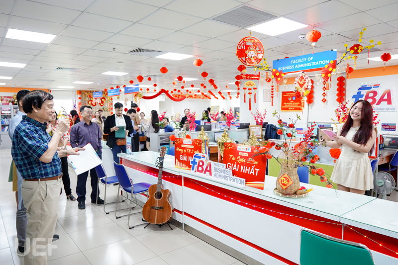Cứ mỗi dịp Tết đến, Nhà UEF đều mở ra nhiều sân chơi thú vị và mang tính giải trí cho toàn thể các thành viên. Cuộc thi trang trí văn phòng là sự kiện thường niên luôn thu hút đầy đủ các tổ công đoàn tham gia tranh tài. Ngoài không khí thi đua, điều quan trọng hơn là các thầy, cô, các anh, chị nhân viên mong muốn mang không khí Tết phủ khắp Nhà UEF. Vì vậy mỗi Phòng, Ban, Khoa, Viện đều đầu tư hoành tráng cho không gian làm việc của mình, đưa Hội đồng giám khảo đi từ bất ngờ này đến bất ngờ khác.