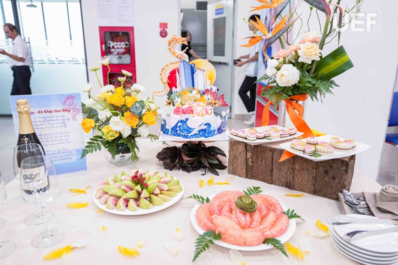 Trong không khí rộn ràng chào đón tuổi mới của UEF, các đơn vị đã tổ chức hàng loạt hoạt động, chương trình xem như một món quà, lời chúc ý nghĩa gửi đến “người bạn lớn”. Trong đó không thể không kể đến sự thành công rực rỡ của cuộc thi trang trí bánh sinh nhật do Công đoàn trường tổ chức, đã diễn ra vào ngày 21/9 vừa qua. Sân chơi này vừa tạo ra cơ hội để toàn thể cán bộ, giảng viên, nhân viên (CB-GV-NV) giao lưu, kết nối vừa giúp các thầy cô bộc lộ sự khéo léo và sức sáng tạo của mình.