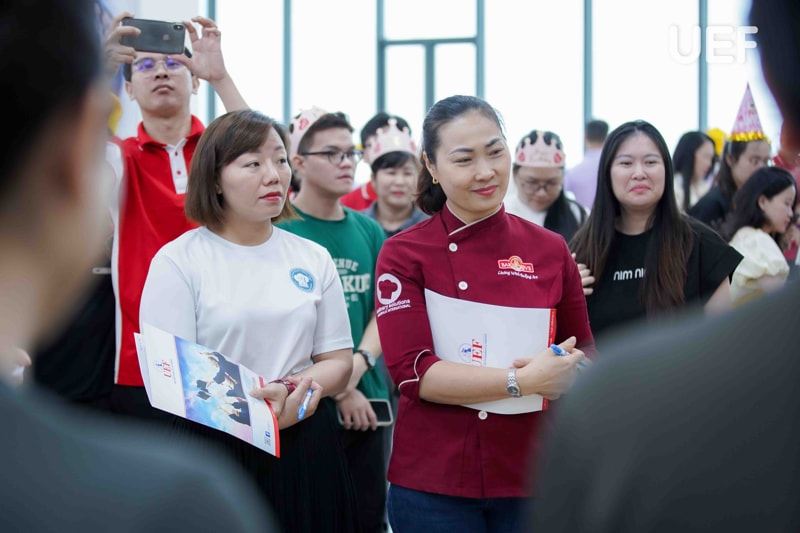 Tham dự và đánh giá cho phần dự thi của các đội có ông Đỗ Quốc Anh - Phó Chủ tịch Hội đồng trường; TS. Hồ Viễn Phương - Phó Hiệu trưởng, Chủ tịch Công đoàn trường; TS. Lý Thiên Trang - Giám đốc Bảo đảm và kiểm định chất lượng UEF; bà Sầm Thị Vân - Trưởng phòng Kỹ thuật, Công ty TNHH Tân Nhất Hương; bà Trát Thanh Thảo - Trưởng phòng đào tạo Trung tâm dạy nghề bánh Nhất Hương. Bên cạnh đó là sự tham gia và cổ vũ nhiệt tình của tập thể CB-GV-NV Nhà UEF.