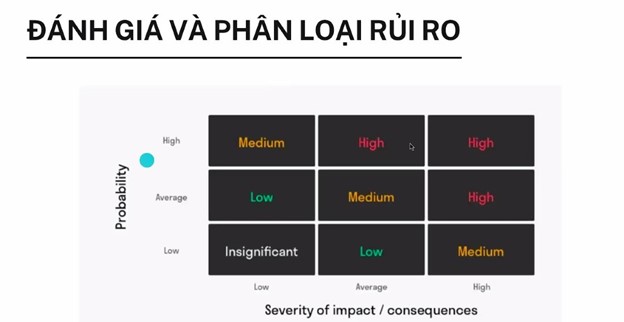 Mô hình thứ hai mà diễn giả giới thiệu là phân tích rủi ro. Mô hình này bao gồm 03 bước: liệt kê các rủi ro, đánh giá rủi ro và quyết định hành động. Trong đó, liệt kê rủi ro là nhìn lại tất cả những yếu tố liên quan đến dự án (con người, tài chính, quy trình) để tham vấn cùng người có kinh nghiệm. Đánh giá rủi ro là dự liệu về khả năng xảy ra rủi ro và hậu quả khi rủi ro đã xảy ra. Cuối cùng là phân loại để có quyết định hành động đối với từng rủi ro cụ thể.