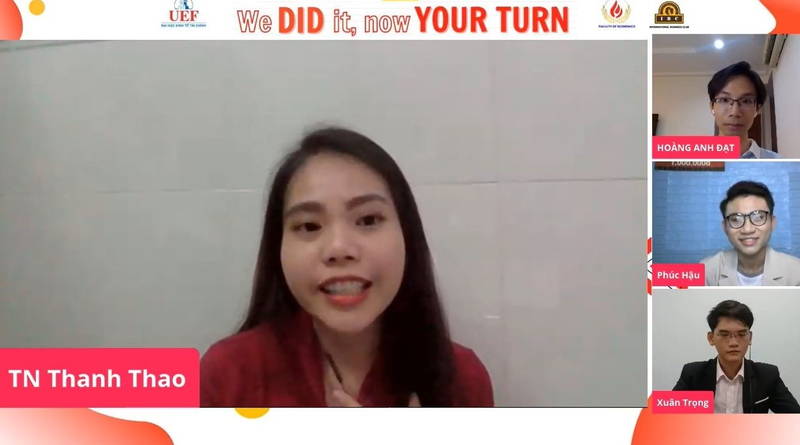 Trong chương trình, UEFers đã được lắng nghe các khách mời kể về những kinh nghiệm trong hành trình nghiên cứu khoa học, một số bí quyết để học tập tốt, cách cân bằng giữa việc học và tham gia các hoạt động.