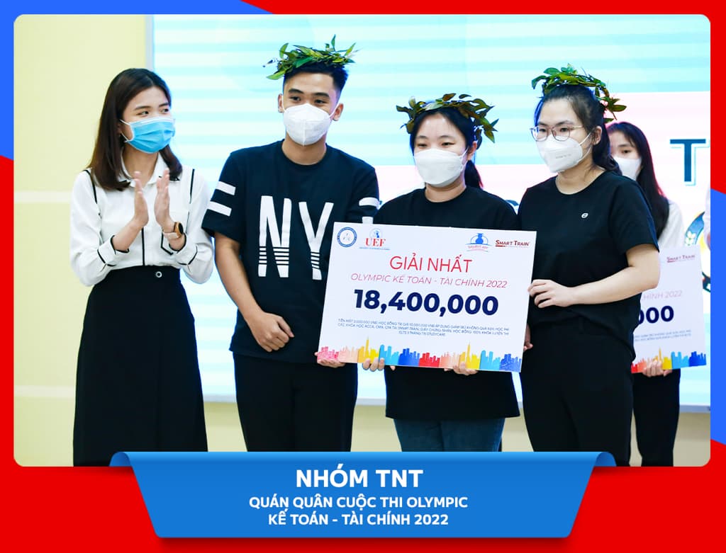 Trải qua 3 chặng thi gay cấn tại vòng Chung kết, đội TNT đã xuất sắc dẫn đầu và giành ngôi vị Quán quân cuộc thi “Olympic Kế toán - Tài chính 2022”. Tại vòng thi quyết định, các bạn đã chứng tỏ được kiến thức chuyên môn, kỹ năng nghề nghiệp cùng sự tự tin, nhạy bén và tinh thần đồng đội. Điều đó đã được ghi nhận và nhận nhiều lời khen từ Ban giám khảo là các doanh nhân, chuyên gia trong lĩnh vực.