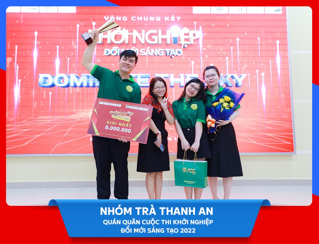 Vượt qua nhiều thử thách cam go của cuộc thi, thể hiện tinh thần sáng tạo và biện luận sắc sảo, nhóm Trà Thanh An với sản phẩm trà làm từ hoa thanh long đã xuất sắc giành Quán quân của cuộc thi “Khởi nghiệp đổi mới sáng tạo năm 2022”. Đây cũng là nhóm duy nhất đã nghiên cứu và đưa ra thành phẩm tại vòng Chung kết, diễn ra vào ngày 30/7.