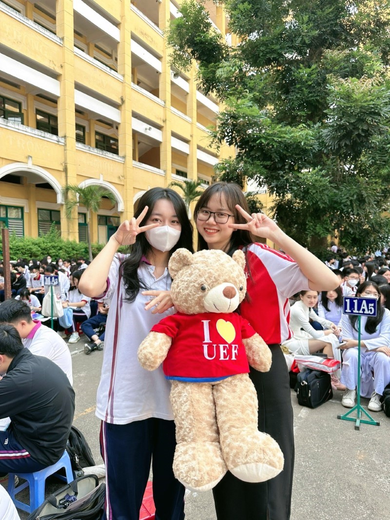 Đó là lời nhắn gửi của Hà Anh đến các UEFers, đặc biệt là 2k5 chuẩn bị nhập học. “Trường luôn đa dạng hóa các hoạt động từ học thuật, văn nghệ, thể thao, cộng đồng, bởi vậy các bạn sẽ luôn dễ dàng thử sức mình ở mọi “mặt trận”. Mặc dù quá trình tham gia có thể sẽ hơi áp lực, đôi khi cần sự kiên trì nhưng áp lực sẽ tạo nên kim cương. Hãy trở thành viên kim cương sáng giá nhất của chính mình” - Hà Anh động viên.
