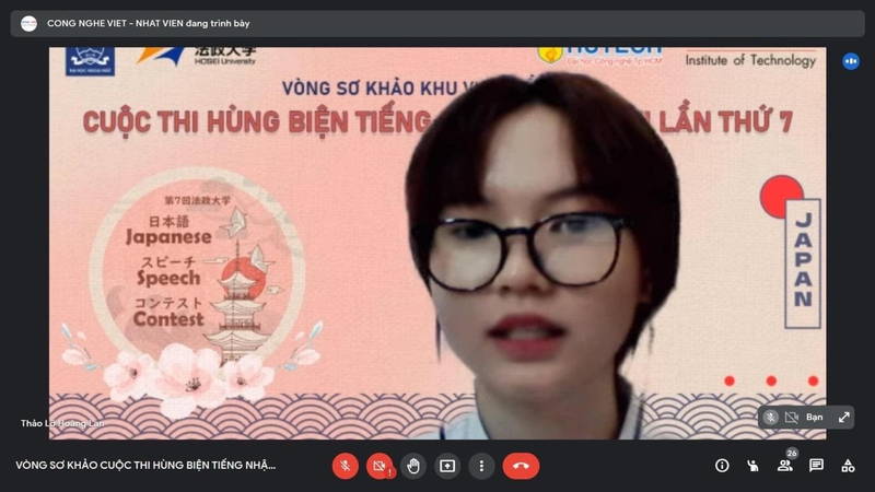 Mỗi thí sinh có 5 phút cho phần thi thuyết trình bằng tiếng Nhật. Các bạn đã thể hiện đa dạng về nội dung, chia sẻ trải nghiệm bản thân, những câu chuyện thú vị làm cho Ban giám khảo không khỏi bất ngờ. Đồng thời, mỗi thí sinh sẽ có khoảng 30 giây để trả lời 2 câu hỏi từ Ban giám khảo. Không chỉ năng lực tiếng Nhật mà kiến thức đời sống, tư duy cá nhân cũng được thể hiện rõ rệt trong từng câu ứng đáp.