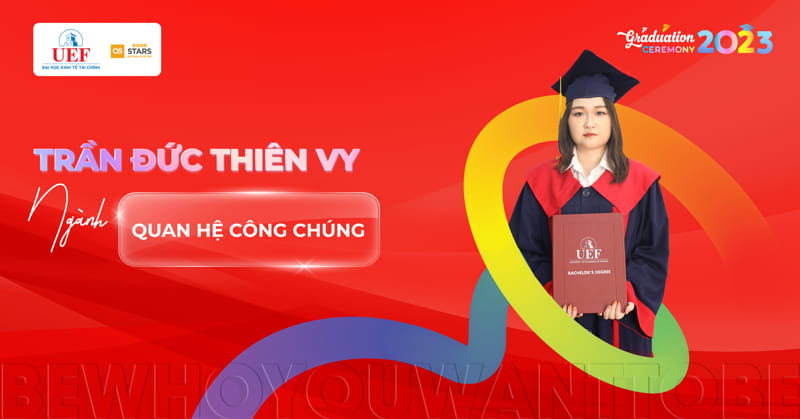 Thời gian tại UEF cho Thiên Vy cảm nhận: “Có cơ hội được học tập lại mái nhà UEF đã giúp em cải thiện được các kỹ năng mềm và nâng cao kiến thức về ngành mà em yêu thích. Em đã học được rất nhiều và vẫn sẽ luôn hoàn thiện bản thân để đạt được những mục tiêu trong tương lai. Và mục tiêu gần nhất của em là thử sức với công việc Tổ chức sự kiện. Em muốn bày tỏ tình cảm trân quý những người đã sẵn sàng lắng nghe, chia sẻ, động viên để em bước tiếp khi gặp thất bại và cũng là những người chung vui mỗi khi em gặt hái được thành công”.