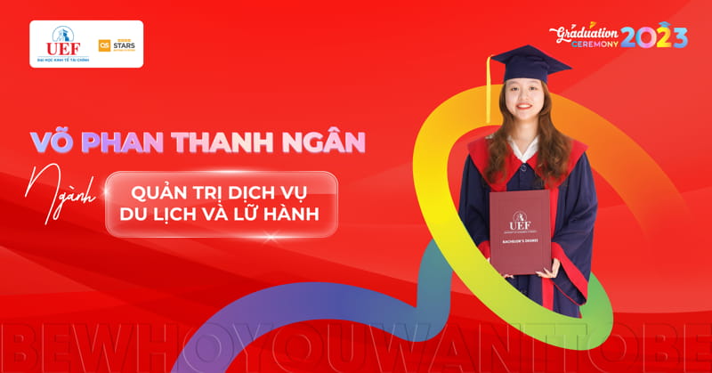 Tô Trần Ngọc Thảo - Ngành Quản trị kinh doanh: “Cảm ơn Nhà UEF đã tạo nên một môi trường thuận lợi để em trở thành phiên bản tốt nhất của mình. Chúc cho những người bạn của em sẽ “vượt ải” thành công với những môn học cuối cùng. Chúc các thầy cô thật nhiều sức khỏe, nhiệt huyết để thực hiện sứ mệnh cao đẹp của mình. Khi kết thúc hành trình này, em cảm thấy tự hào về bản thân mình vì đã vượt qua được những thách thức, đối mặt với những khó khăn và đạt được mục tiêu mình đã đề ra. Tuy nhiên, em cũng có một chút cảm xúc trống trải, bởi vì một phần hành trình học tập thú vị đã kết thúc. Những người bạn, thầy cô và Nhà UEF đã trở thành một phần quan trọng trong cuộc sống hàng ngày của em, việc tốt nghiệp có thể đánh dấu một khoảnh khắc chia xa. Nhưng đây không phải là một dấu chấm hết, mà còn là một cửa ngõ mở ra nhiều cơ hội và khả năng phát triển tốt đẹp cho em”.