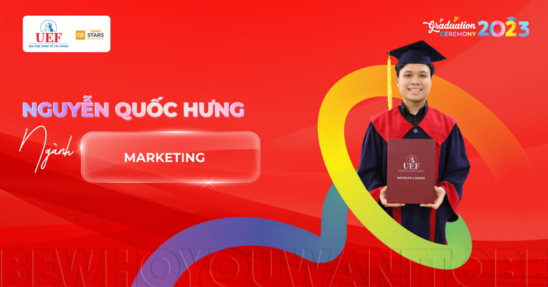 Nguyễn Quốc Hưng - Ngành Marketing: “Sau hành trình này, cảm xúc em rất hỗn độn như: hạnh phúc, vui, buồn, áp lực, lo lắng… Nhưng khi nhìn lại trong suốt quá trình đó, bản thân đã tiến bộ hơn rất nhiều trong suy nghĩ và nhận thức. Em cảm ơn các thầy cô đã chỉ bảo, hướng dẫn và truyền đạt cho em kiến thức, kỹ năng, nền tảng đủ vững để em đạt được nhiều mục tiêu hơn. Bên cạnh đó, em cảm ơn Nhà UEF đã cho em gặp được nhiều người bạn thú vị, anh chị giỏi giang, thầy cô tâm huyết và đặc biệt là đã cho em gặp được tình yêu của mình. Từ đó, hành trình giảng đường của em có thêm nhiều màu sắc và ý nghĩa”.