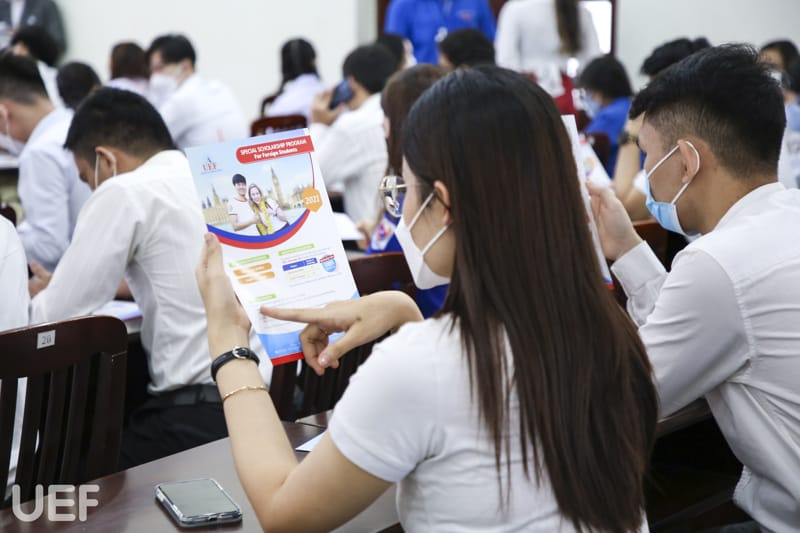 Trong chương trình, sinh viên Lào - Campuchia cũng được giới thiệu các chính sách học bổng và chương trình học tập dành cho cử nhân người nước ngoài tại UEF