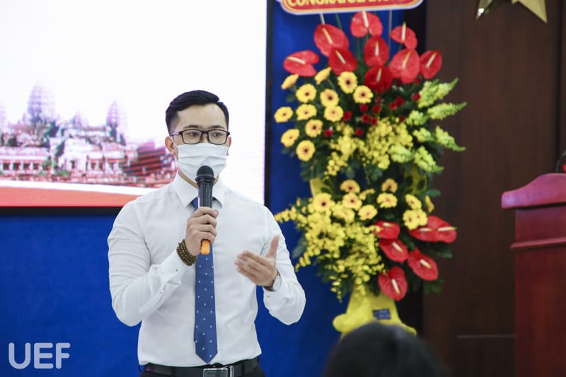 Đáng chú ý, tại chương trình, TS. Đỗ Hữu Nguyên Lộc - Phó Hiệu trưởng, Viện trưởng Viện Quốc tế UEF đã chia sẻ về những khó khăn chung trong năm 2021 và giới thiệu những suất học bổng của Nhà trường để góp phần mở rộng cơ hội học tập quốc tế cho sinh viên Lào và Campuchia tại UEF. Cũng trong buổi lễ, UEF đã dành tặng 20 suất học bổng tuyển sinh ngành Việt Nam học và 20 suất học bổng tuyển sinh ngành Ngôn ngữ Anh khóa 2021 dành riêng cho học sinh Lào, Campuchia tiêu biểu đang sinh sống và học tập tại TP.HCM. Một số bạn sinh viên nhân đây đã bày tỏ cảm xúc và giao lưu về những trải nghiệm của mình trong thời gian qua.