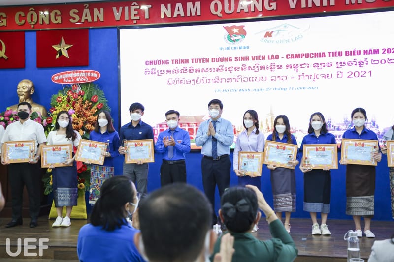 Nhằm tạo động lực và khuyến khích các bạn sinh viên Lào, Campuchia nỗ lực học tập và hoạt động tại TP.HCM, Thành đoàn đã phối hợp cùng Ký túc xá Sinh viên Lào tổ chức chương trình "Tuyên dương sinh viên Lào - Campuchia tiêu biểu" năm 2021 vào ngày 27/11 vừa qua. Trong danh sách 107 sinh viên được trao tặng danh hiệu có 6 lưu học sinh Lào đang theo học tại UEF.
