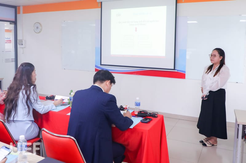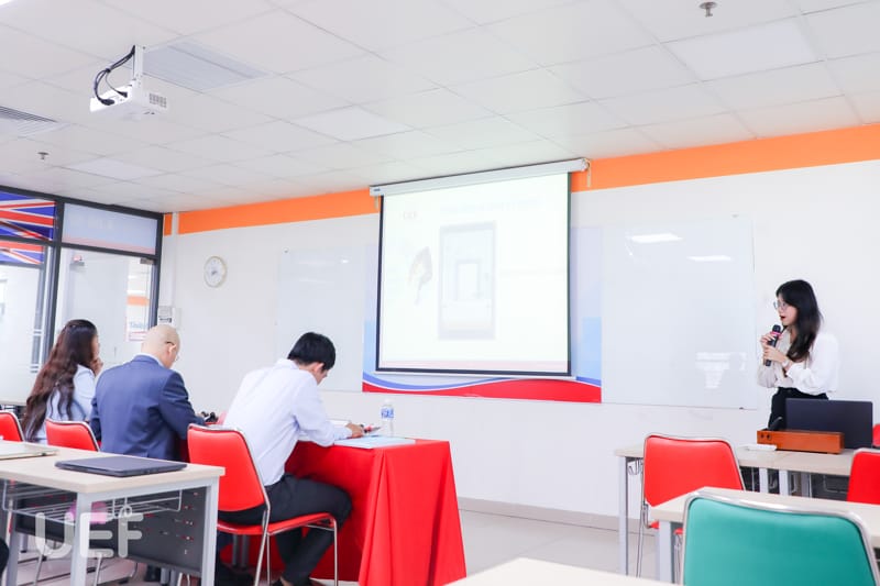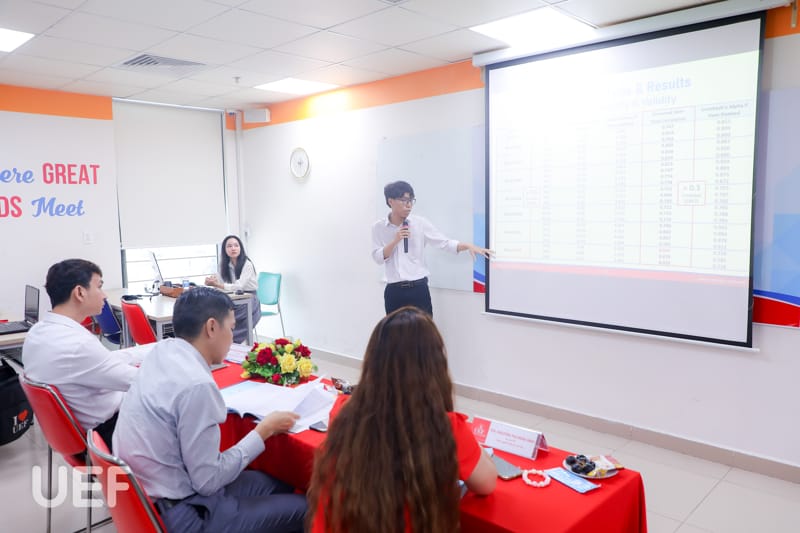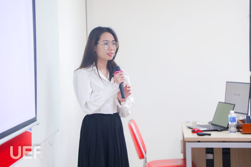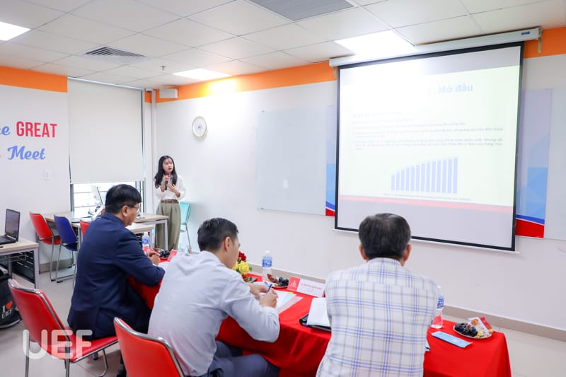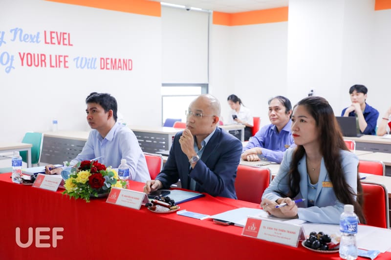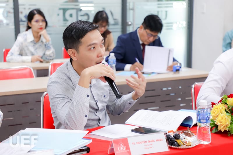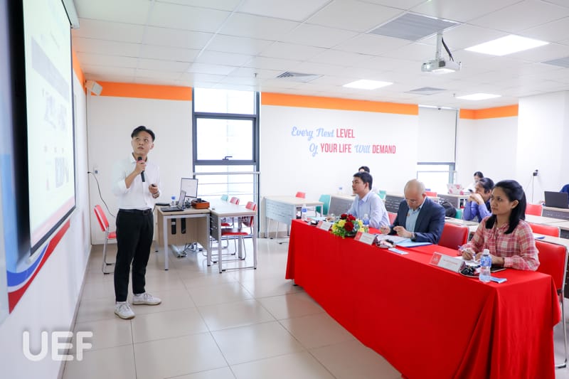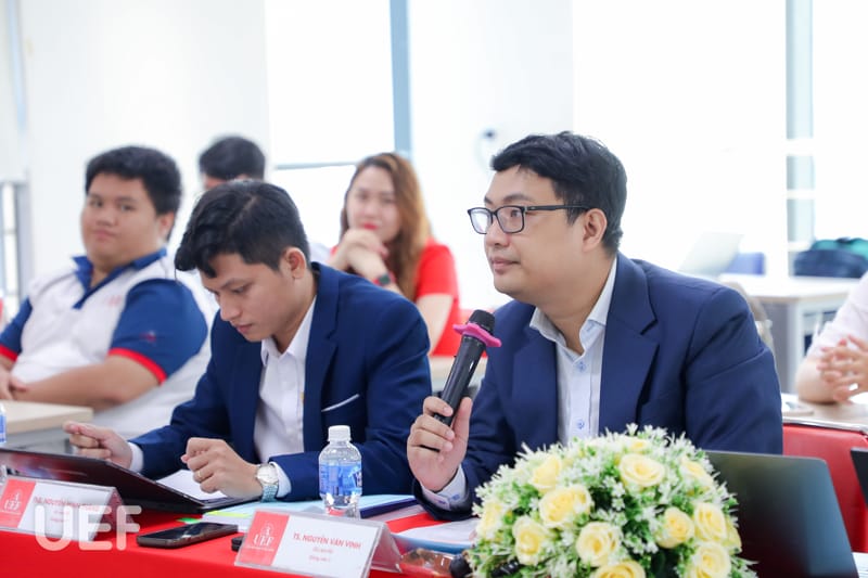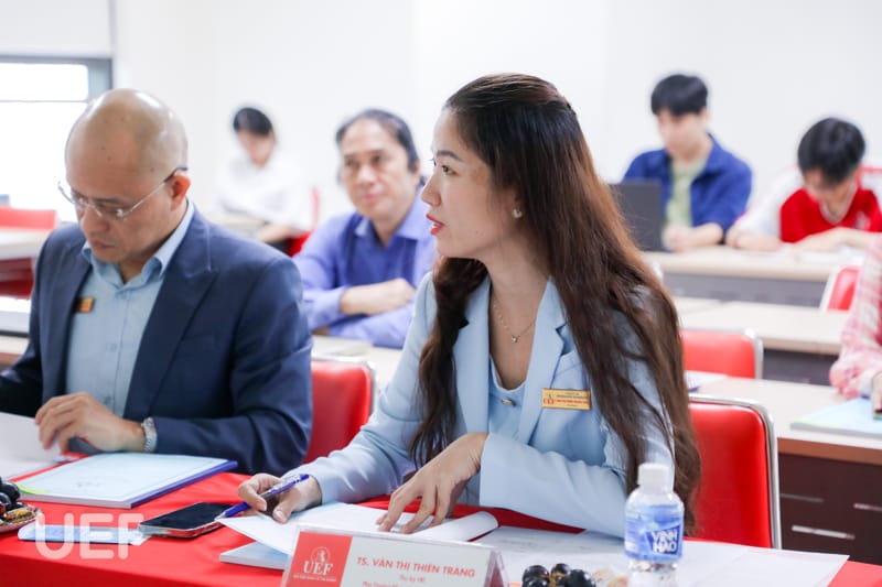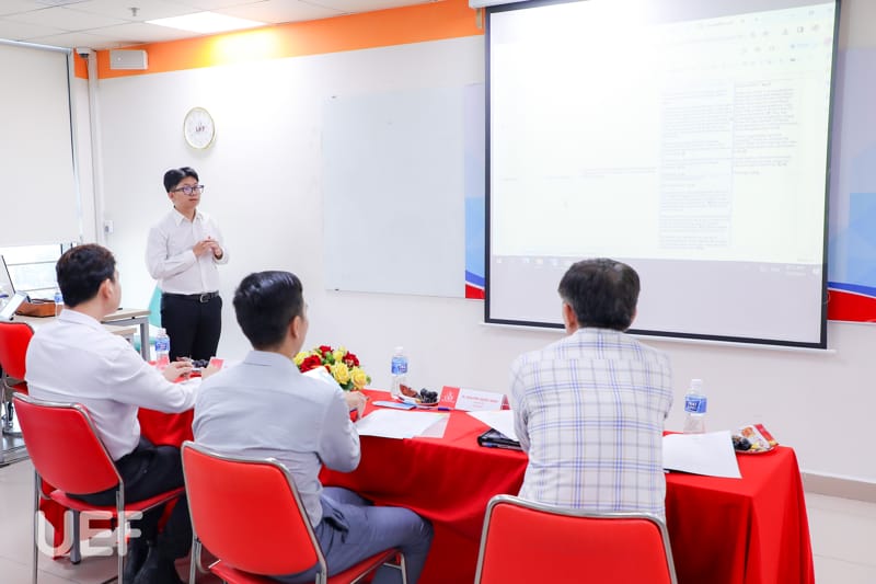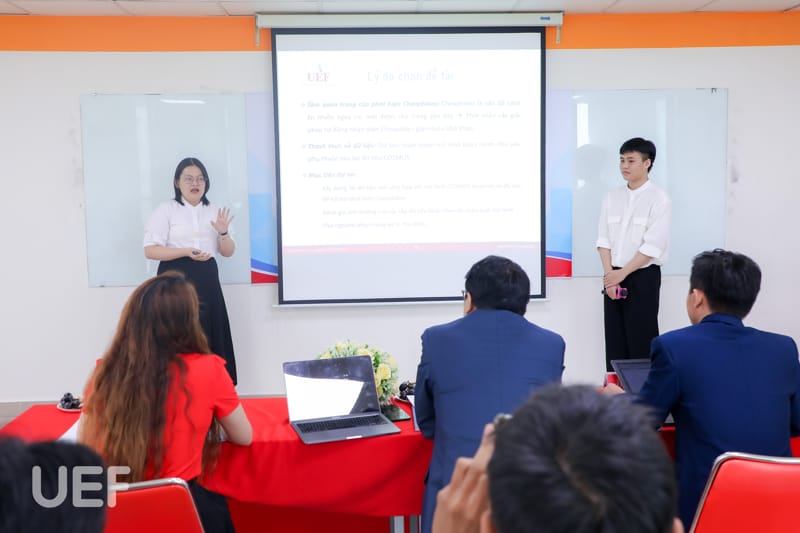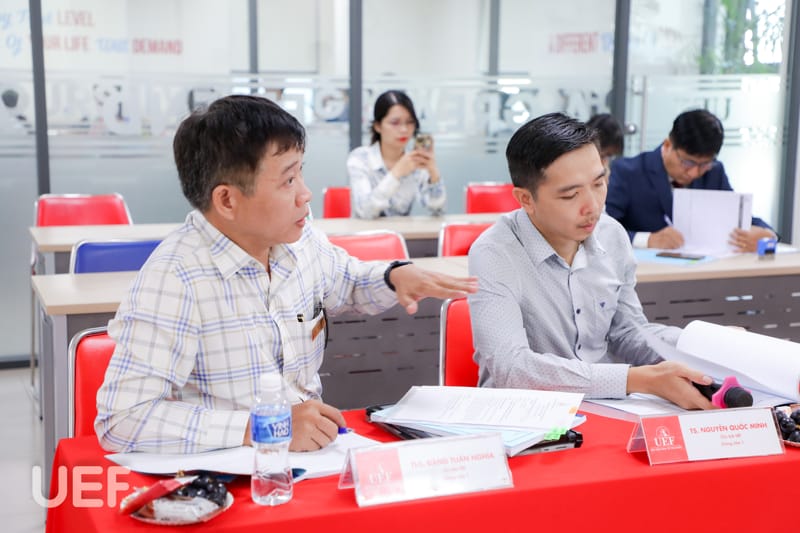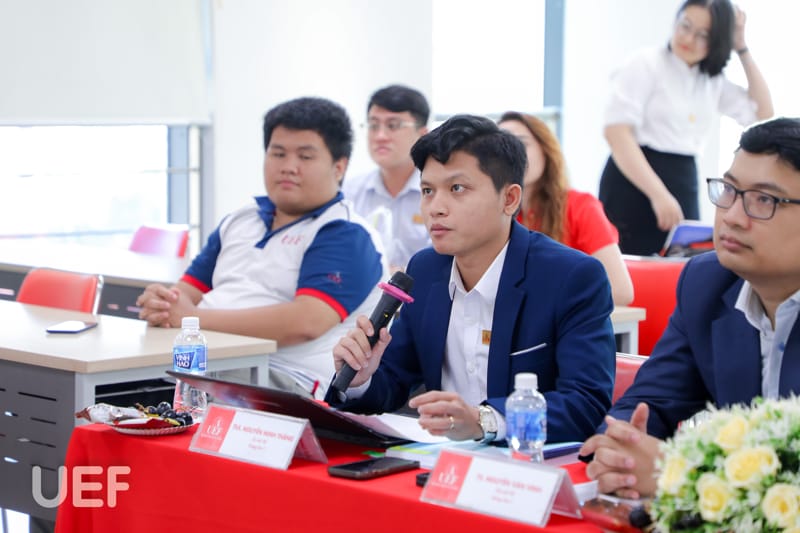 Hội đồng đánh giá 5 đề tài khóa luận của ngành Công nghệ thông tin Ở ngành này, có 5 đề tài khóa luận được bảo vệ gồm: (1) Phát triển game 2D dân gian kinh dị trên Unity Engine - Nguyễn Ngọc Uyển Nhi, (2) Xây dựng hệ thống tìm kiếm việc làm dành cho sinh viên tại trường đại học - Lê Anh, (3) Xây dựng hệ thống hỗ trợ thực tập tốt nghiệp dành cho sinh viên tại UEF - Nguyễn Ngọc Thùy Trang, (4) Xây dựng website Tình Thân Foundation - Lê Thảo Duyên, (5) Xây dựng website học tiếng Anh chuyên ngành Công nghệ thông tin - Đặng Thị Mộng Tuyền.