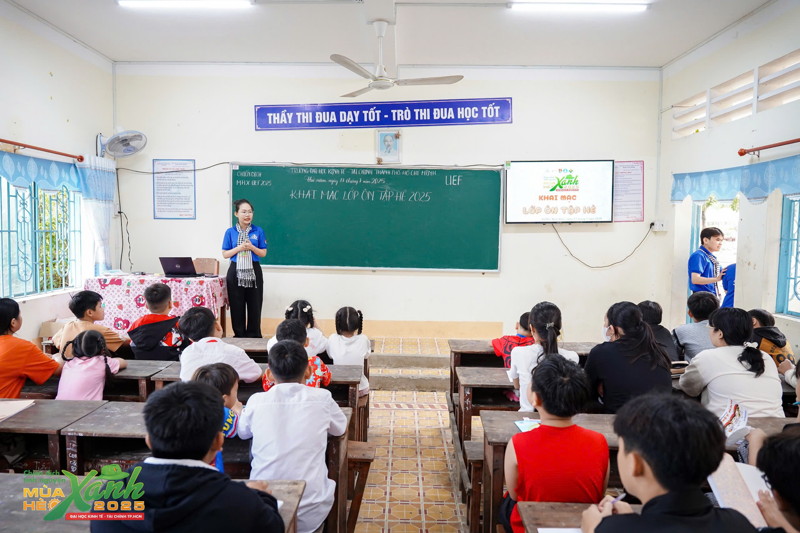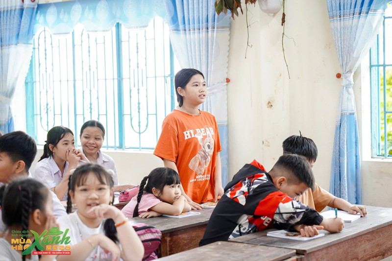 Cũng trong ngày 17/7, tại Trường THCS Tân Kiều, các chiến sĩ UEF đã phối hợp với nhà trường tổ chức khai mạc lớp ôn tập hè và chuỗi sinh hoạt thiếu nhi. Với phương pháp dạy học sáng tạo, kết hợp trò chơi, kể chuyện, sinh hoạt kỹ năng, các bạn sinh viên đã mang đến một môi trường học tập sinh động và bổ ích cho các em học sinh địa phương trong kỳ nghỉ hè. Hoạt động này giúp các em nhỏ ôn luyện kiến thức và phát triển kỹ năng mềm, khơi dậy niềm vui học tập.
