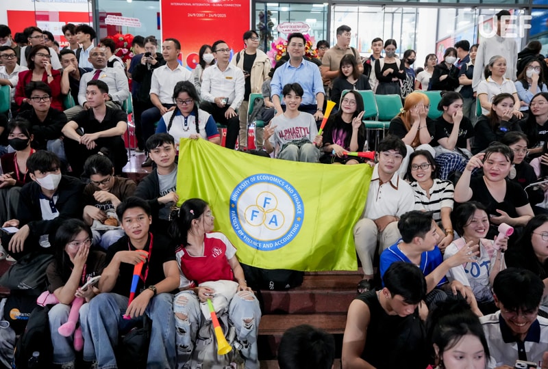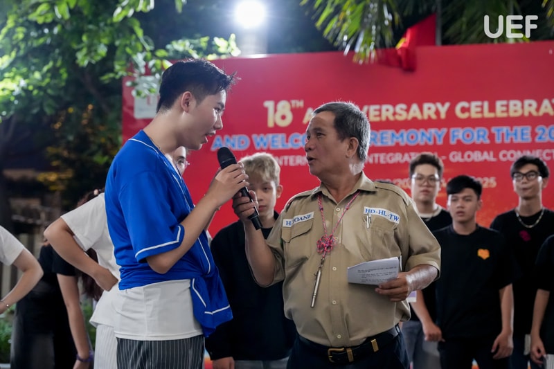 chương trình giao lưu “We are one”. Loạt trò chơi tập thể đã giúp các bạn xóa đi sự ngại ngùng, kéo gần khoảng cách, tạo nên những vòng tay mới, những tiếng cười giòn giã và cả nguồn năng lượng tích cực của tuổi trẻ. Ở đó, mỗi phần quà mang về không chỉ là niềm vui mà còn là minh chứng cho sự đồng hành, cùng nhau xây dựng kỷ niệm đáng nhớ dưới mái trường UEF.