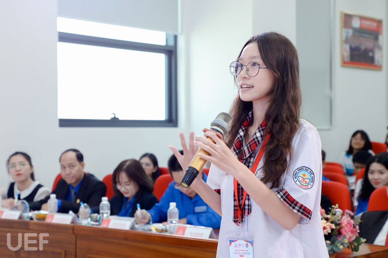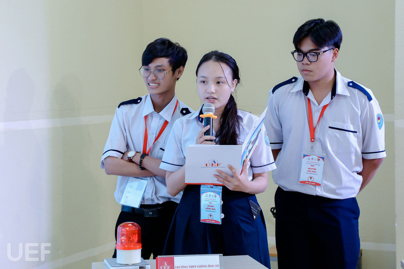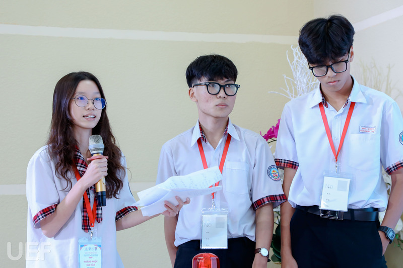 Mở đầu, TS. Nhan Cẩm Trí đã gửi lời chào mừng các bạn học sinh của 4 trường THPT trong vòng Chung kết. Đồng thời, thầy cũng giới thiệu thông tin tổng quan về UEF đến các bạn và gửi lời động viên đến các thí sinh sẽ hoàn thành thật tốt tại chặng đua cuối này.