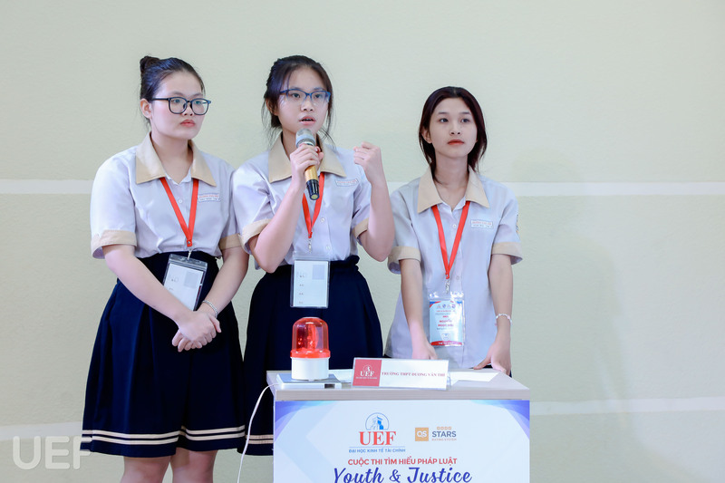 Trải qua vòng loại ở các trường THPT khu vực TP.HCM, cuộc thi Youth & Justice 2023 do Khoa Luật UEF phối hợp Trung tâm Tham vấn tâm lý và Hỗ trợ pháp luật và Đoàn Thanh niên Đoàn Luật sư TP.HCM tổ chức đã đi đến chặng đua cuối cùng. Vòng Chung kết có sự góp mặt của 4 đội thi xuất sắc, đại diện 4 trường: THPT Giồng Ông Tố, THPT Dương Văn Thì, THPT Thủ Đức, THPT Nguyễn Thị Diệu đã diễn ra vào sáng nay - 11/3.