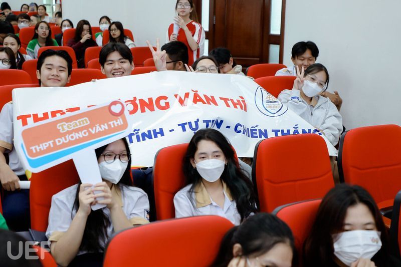 Các bạn học sinh cổ vũ hết mình cho đội thi đại diện trường