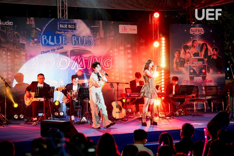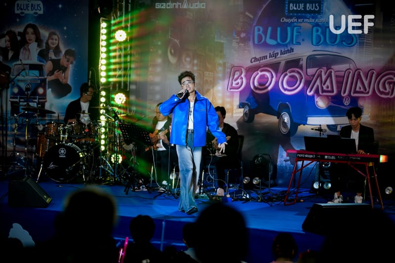 Tối ngày 31/10, Ban tổ chức chương trình Blue Bus đã phối hợp với UEF mang đến đêm nhạc Blue Bus Blooming dành tặng cho các bạn sinh viên. Đây cũng là sân khấu để các ca sĩ trẻ của chương trình tỏa sáng, thể hiện tài năng và lan tỏa tình yêu âm nhạc đến khán giả.