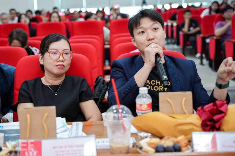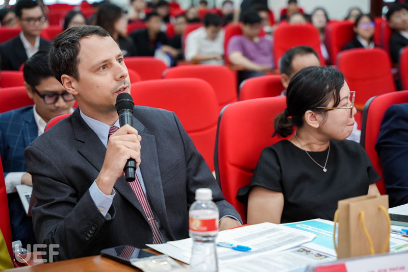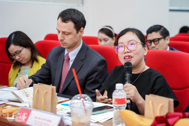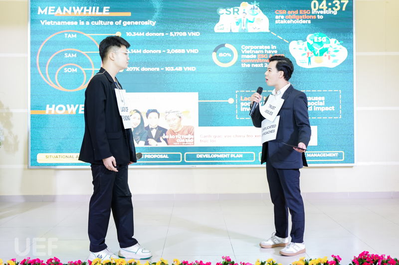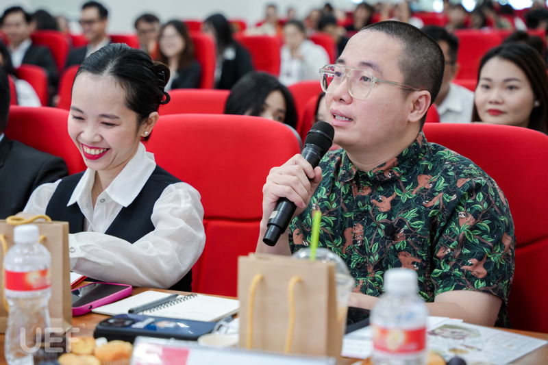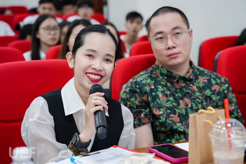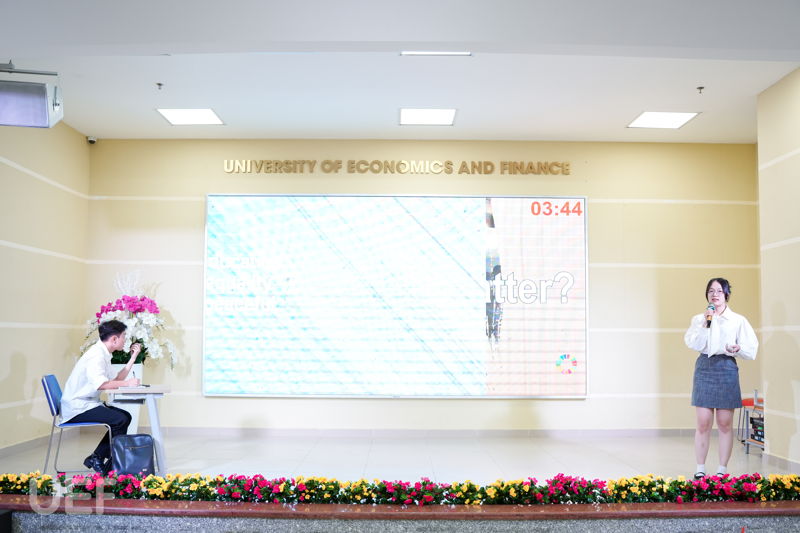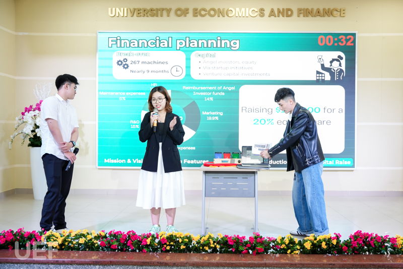Về phía UEF có sự tham dự của TS. Nhan Cẩm Trí - Phó Hiệu trưởng Nhà trường, ThS. Tăng Mỹ Hà - Phó Trưởng Khoa Kinh tế, ThS. Đỗ Thị Thu Hà - Phó Trưởng Khoa Kinh tế, ThS. Nguyễn Lê Đông Xuân - Phó Trưởng Khoa Kinh tế cùng các thầy cô, mentor đồng hành với top 11 và sinh viên đến từ các trường cao đẳng, đại học, học viện tham gia cổ vũ.