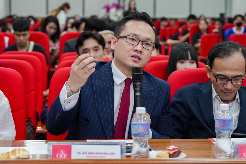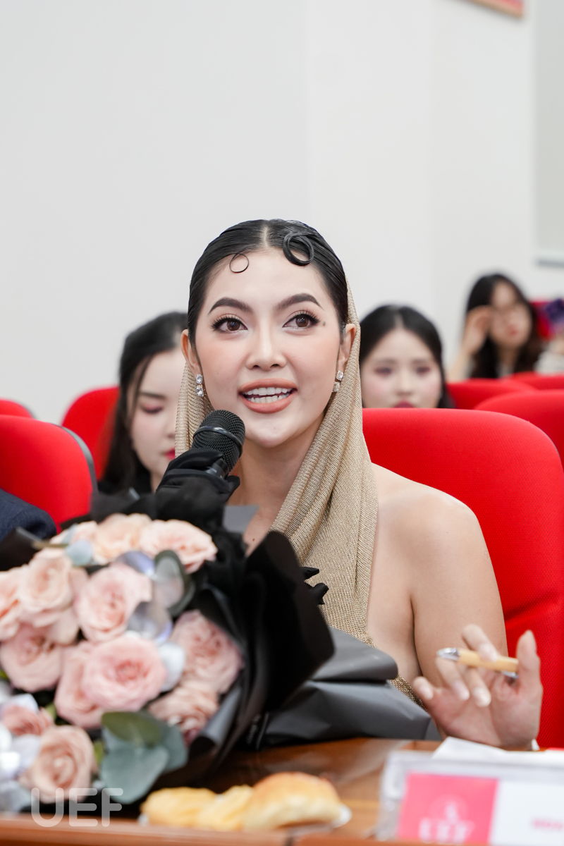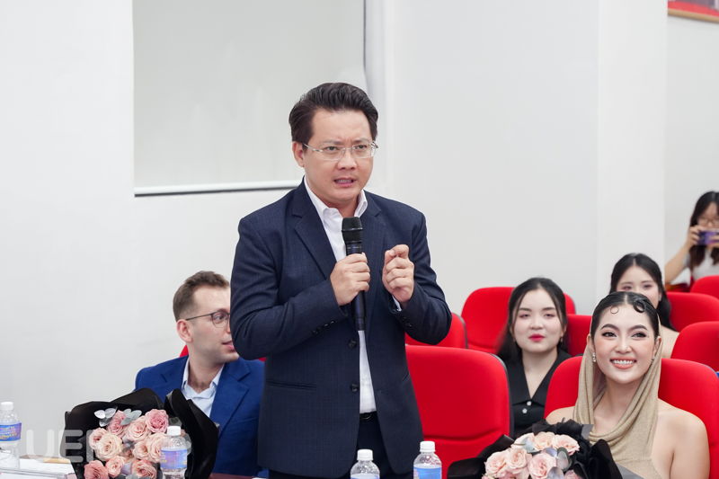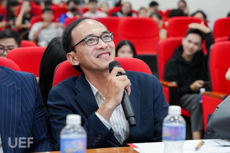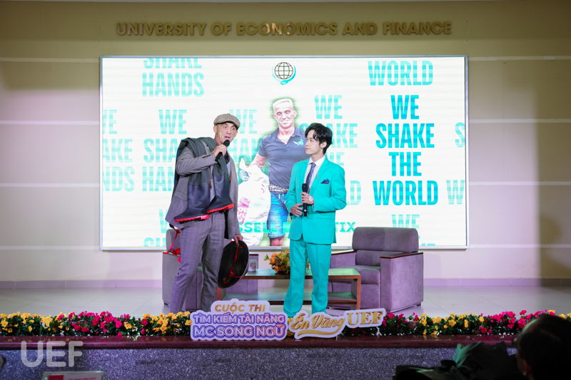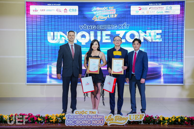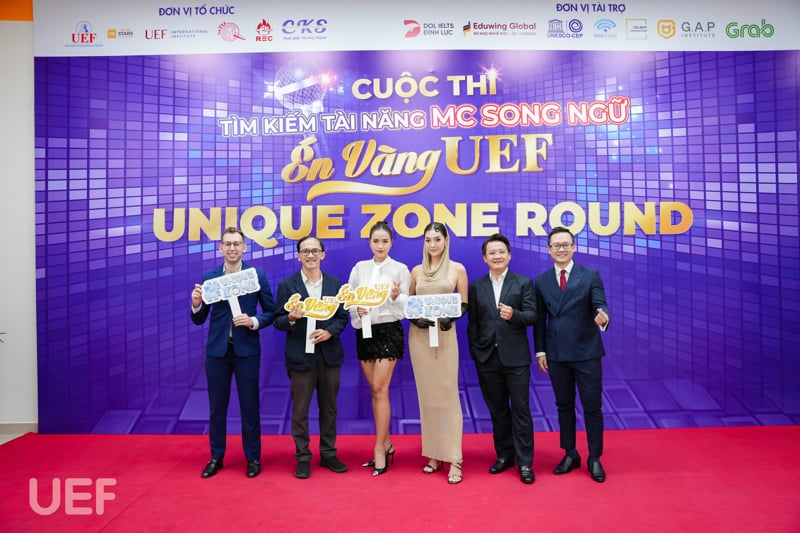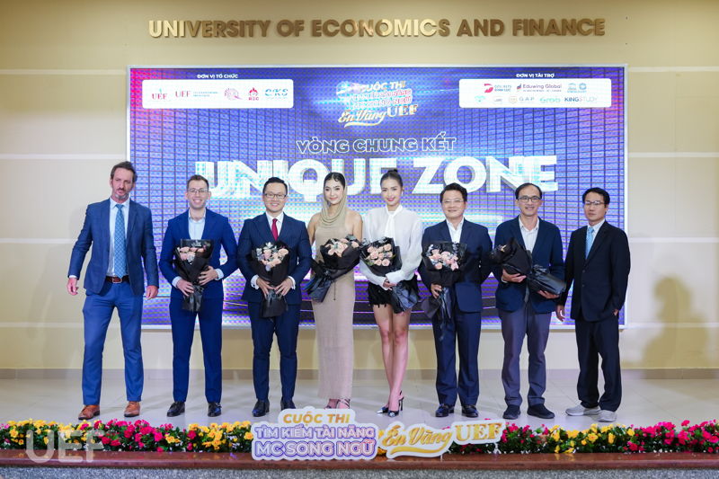 Về phía UEF có: TS. Đỗ Hữu Nguyên Lộc - Phó Hiệu trưởng Nhà trường; ThS. Nguyễn Bá Anh - Phó Viện trưởng Viện Quốc tế; ThS. Phan Lý Nguyên Trinh - Tổ trưởng Viện Quốc tế, Trưởng Ban tổ chức cuộc thi và các thầy cô là trưởng ngành, giảng viên Viện Quốc tế, đại diện các đơn vị Phòng ban, Trung tâm UEF cùng Ban chủ nhiệm Câu lạc bộ Mic Zone UEF.