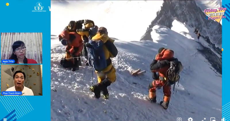 Thông qua câu chuyện chinh phục “nóc nhà thế giới” - Đỉnh Everest cũng như các công việc thi đấu, đóng phim, anh Phan Thanh Nhiên đã “truyền lửa” và mang đến nhiều lời khuyên bổ ích cho các bạn tân sinh viên Nhà UEF. Anh nhấn mạnh “người vĩ đại không phải là người làm việc lớn mà là người làm việc nhỏ nhưng không bao giờ bỏ cuộc”.
