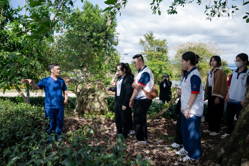 Sinh viên tham quan vườn trà và được hướng dẫn cách thưởng thức trà ngon