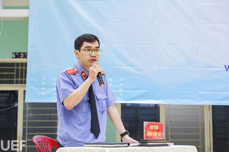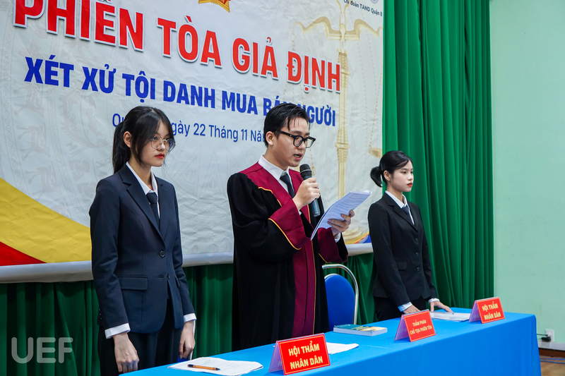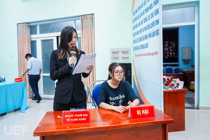 Bên cạnh hoạt động tham quan, học tập thực tế tại các văn phòng luật, tòa án, viện kiểm sát, văn phòng công chứng,... trên địa bàn thành phố, sinh viên Khoa Luật UEF còn được trải nghiệm các tiết học sinh động thông qua “Phiên toàn giả định”.