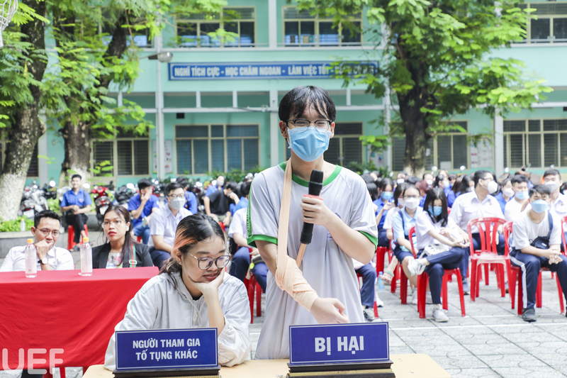 Theo đó, sáng ngày 9/7 vừa qua, Khoa Luật UEF đã phối hợp với Đoàn Thanh niên phường Võ Thị Sáu và Chi đoàn Tòa án Quận 3 tổ chức phiên tòa giả định xét xử vụ án về bạo lực học đường tại Trường THCS Collette (10 Hồ Xuân Hương, Phường 6, Quận 3).