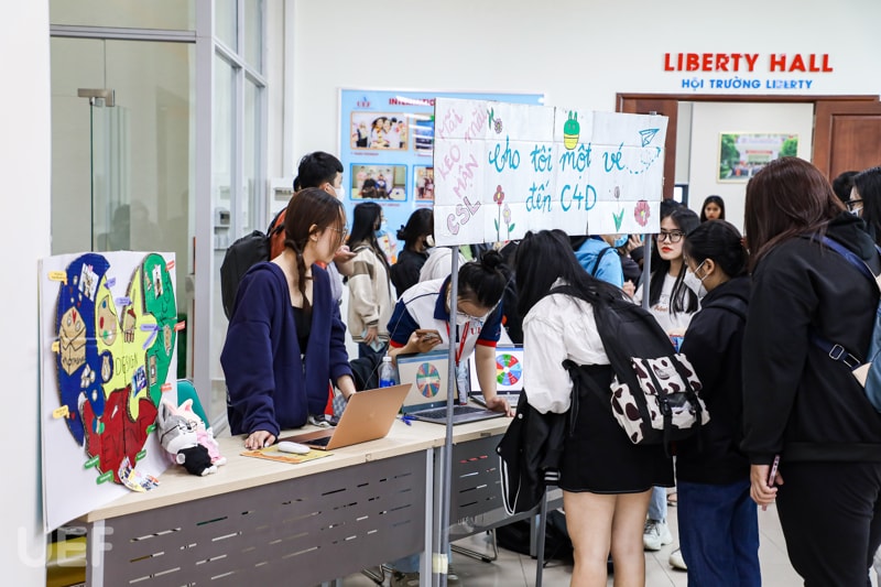 Sinh viên hào hứng tham gia trò chơi và tìm hiểu về các dự án