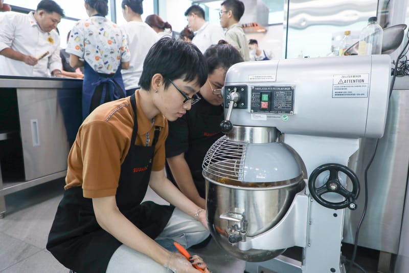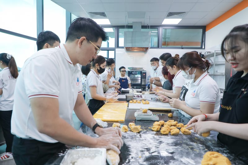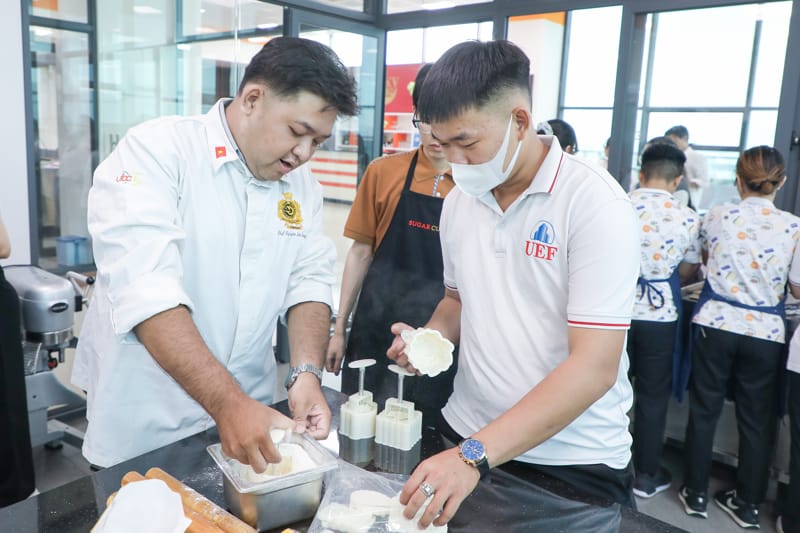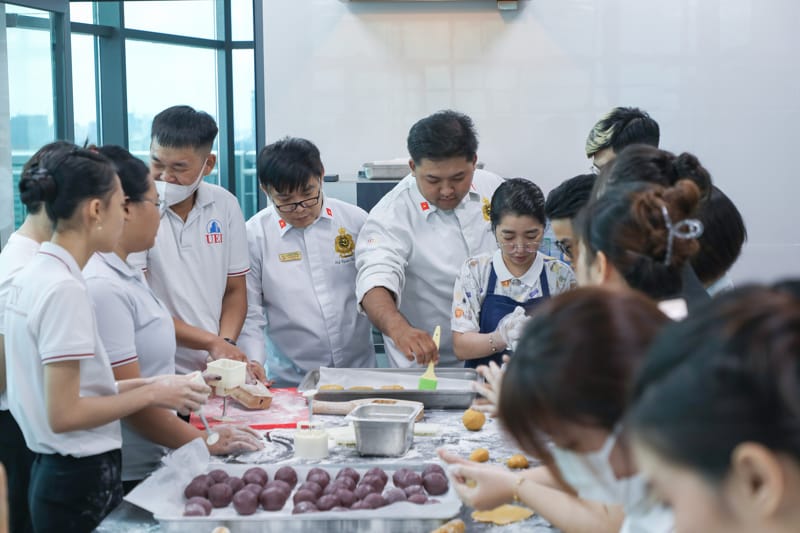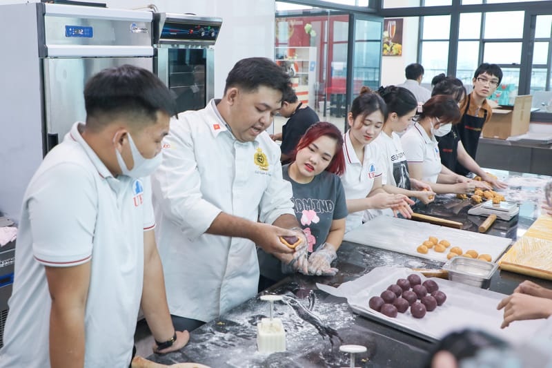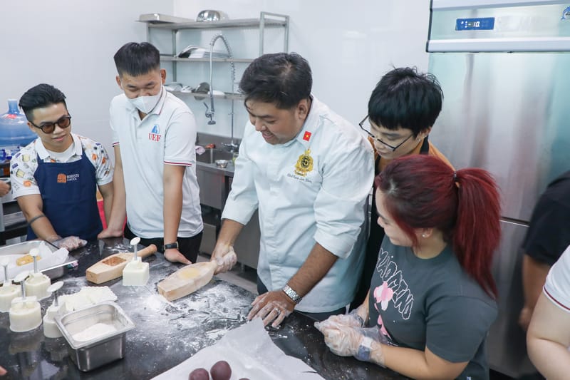 Đầu bếp Nguyễn Lâm Khang hướng dẫn quy trình làm bánh trung thu cho sinh viên