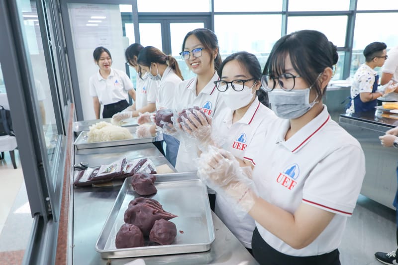 “Đối với lĩnh vực bếp bánh, dù các bạn chưa tiếp xúc nhiều, nhưng với định hướng của các thầy cô trước đó về phân loại, phương pháp, quy trình thực hiện và chế biến, thì buổi hướng dẫn hôm nay khá trơn tru. Các bạn sinh viên rất nhanh nhạy và nhiệt huyết, tác phong và tinh thần làm việc nhóm tốt. Những hoạt động thực tế mang tính xã hội như thế này rất tốt cho sinh viên, giúp các bạn rèn luyện kỹ năng mềm và nghiệp vụ chuyên môn, cũng như nắm được những thông tin về ẩm thực và quy trình chế biến ra sản phẩm. Ngoài ra, phòng thực hành bếp tại UEF đạt chuẩn mô hình bếp Âu, Á và bếp bánh, trang thiết bị đều tân tiến, đảm bảo cho quá trình thực hiện diễn ra thuận lợi”, Đầu bếp Nguyễn Lâm Khang chia sẻ.