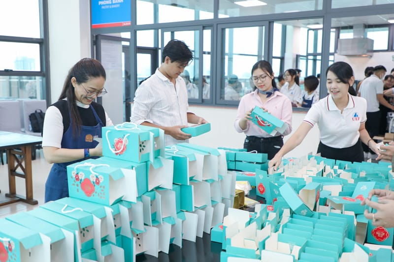 Sáng 8/9, chương trình “Ánh trăng cổ tích” do Khoa Quản trị du lịch - Khách sạn UEF tổ chức đã diễn ra với buổi làm bánh Trung thu gây quỹ. Hoạt động ý nghĩa này thu hút nhiều sinh viên tham gia cùng sự hỗ trợ của đầu bếp đến từ Công ty Nhất Hương.
