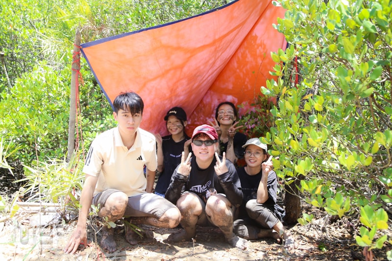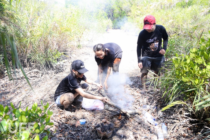 Với tinh thần không bỏ cuộc, vượt qua những thân đước cao, những vũng bùn sâu, 3 đội đã có chuyến băng rừng đầy ngoạn mục. Đến nơi, các bạn còn được thử tài nướng cá, nướng khoai, khéo léo đan lá, dựng lều. Không mấy khi có cơ hội được trải nghiệm thực hành các kỹ năng sinh tồn, UEFers không giấu được sự thích thú, háo hức trước những trò chơi tập thể.