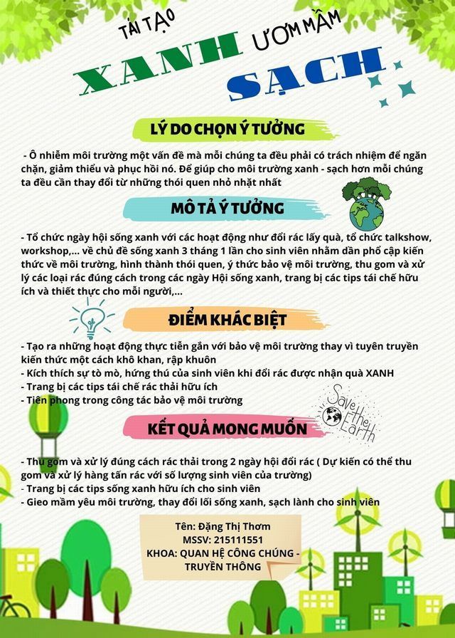 Tái tạo xanh - Ươm mầm sạch của SV Đặng Thị Thơm (SBD 04)