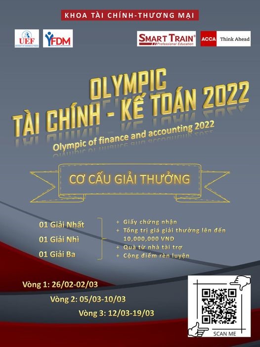 Olympic Tài chính - Kế toán là một cuộc thi thường niên được tổ chức bởi câu lạc bộ YFDM - Young Financial Decision Makers Club dưới sự hỗ trợ của khoa Tài chính – Thương mại. Trải qua 2 lần tổ chức thành công, cuộc thi đã và đang thu hút sự quan tâm đông đảo các bạn sinh viên trong lĩnh vực tài chính, kế toán.