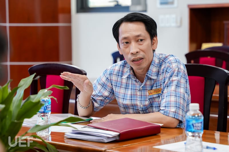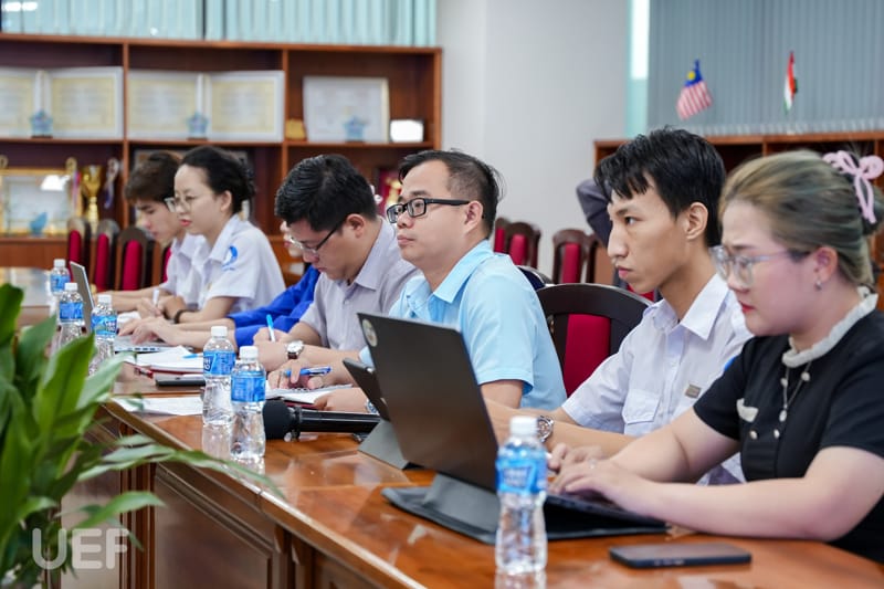 Tham dự buổi họp có TS. Nhan Cẩm Trí - Phó Hiệu trưởng, TS. Mạch Trần Huy - Phó Bí thư Đảng ủy, Phó Chánh Văn phòng trường, ThS. Bùi Quang Đông - Trưởng Phòng Công tác sinh viên, ThS. Nguyễn Huỳnh Sinh - Bí thư Đoàn trường, Phó Trưởng Phòng Công tác sinh viên, ThS. Trần Ngọc Diễm Minh - Phó Trưởng phòng Công tác sinh viên, đồng chí Dương Trường Thuận - Chánh Văn phòng Đoàn trường cùng các đại diện Đoàn thanh niên - Hội sinh viên UEF.