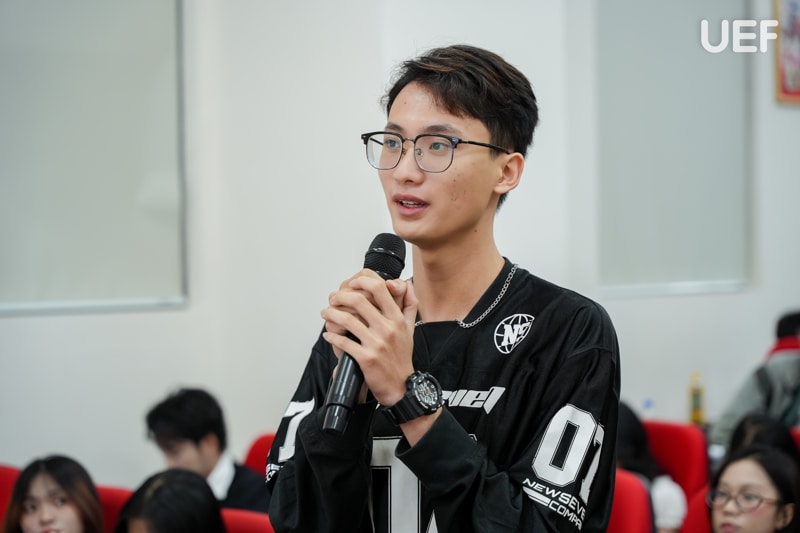 Đạo diễn Victor Vũ đã nhiệt tình chia sẻ về quy trình thực hiện phim một cách hiệu quả, đi sâu vào các khâu quan trọng từ dựng hậu kỳ đến nghệ thuật làm việc nhóm sao cho ăn ý, hiệu quả, với cách tận dụng các công cụ hỗ trợ để nghiên cứu và phát triển ý tưởng. Những chia sẻ này là kinh nghiệm, là những bài học thực tế, giúp sinh viên hình dung rõ hơn về một quy trình sản xuất phim chuyên nghiệp, từ đó biết cách chuẩn bị và phát triển bản thân.