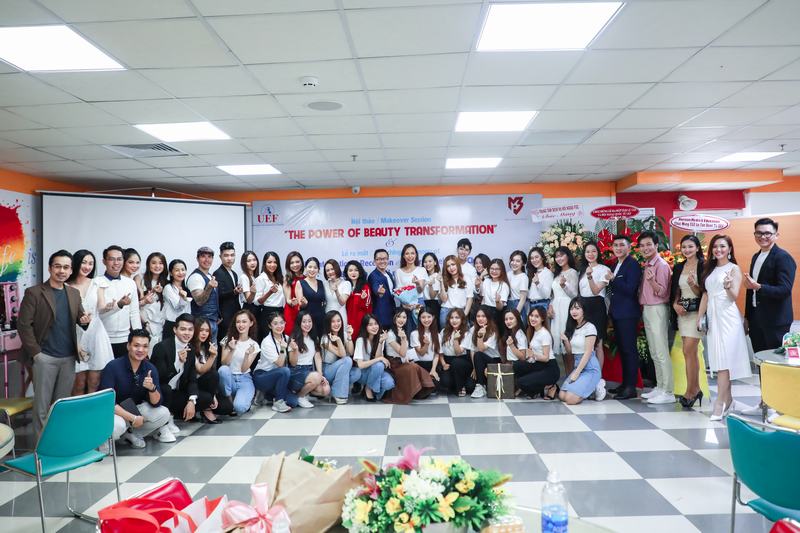 Đến với hội thảo “The Power of Beauty Transformation”, các bạn sinh viên UEF đã chứng kiến sức mạnh thần kỳ của công nghệ trang điểm qua màn trổ tài của "phù thủy" make up Myka Nguyễn. Không chỉ thị phạm cách trang điểm chuyên nghiệp, Myka Nguyễn còn hướng dẫn chi tiết các bước để trang điểm phù hợp với từng gương mặt và phong cách của các bạn sinh viên.