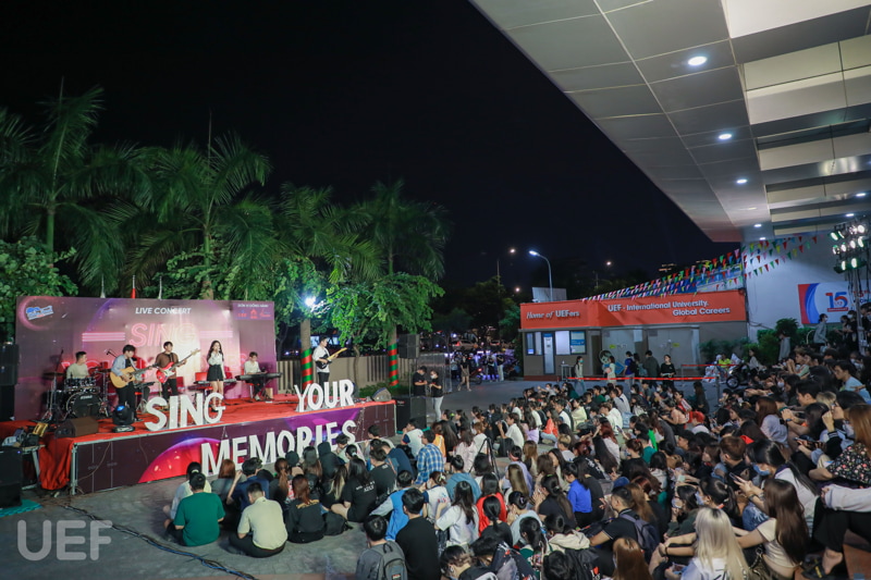 Tiếp nối sự sôi động, sắc màu của ngày hội Club’s Day, vào tối 9/11, các bạn sinh viên tiếp tục được thưởng thức "bữa tiệc" âm nhạc với chương trình live concert “Sing Your Memories”. Đây là đêm nhạc kỷ niệm 4 năm thành lập và hoạt động của câu lạc bộ Chấm Band tại Nhà UEF.