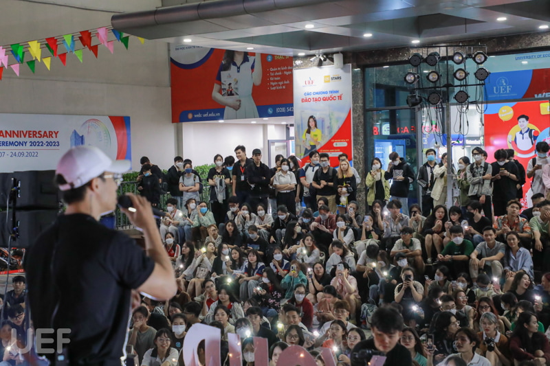 Một trong những điều tạo nên không khí thật "cháy" tại đêm nhạc là sự theo dõi, ủng hộ nhiệt tình từ các bạn sinh viên. Đây cũng là một “memories” đáng nhớ trong hành trình của Chấm Band tại UEF.