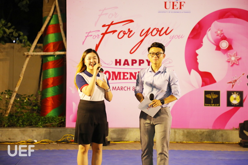 Ngay sau món quà ẩm thực "Chuẩn cơm anh nấu" của các nam cán bộ - giảng viên - nhân viên, buổi họp mặt chu đáo, ấm cúng của Công đoàn trường, phái đẹp Nhà UEF lại tiếp tục nhận được món quà tinh thần ngọt ngào từ các Câu lạc bộ (CLB) sinh viên với Mini Show “For You”, diễn ra tối qua - 8/3.